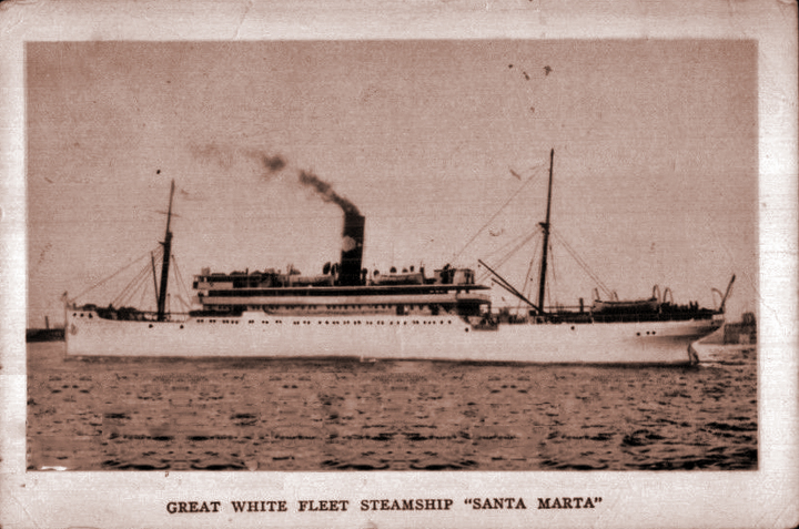 A sister ship to the Metapan, the Santa Marta was built by Workman, Clark & Co., Belfast, Ireland in 1909 for the United Fruit Steamship Company but flying the British flag until after the outbreak of World War I. With a displacement 4,601 gross tons, she was 378 feet long and 50 feet wide and had two masts and one funnel. Her triple expansion steam engine and single screw provided a service speed of 14 knots. She worked the New York-Jamaica-Cuba-Central America service and was scrapped at Baltimore, Maryland in 1948.
