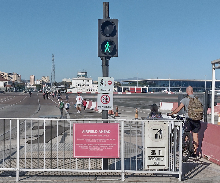 pedestrian crossing, the frontier and La Linea de la Conception, Spain.