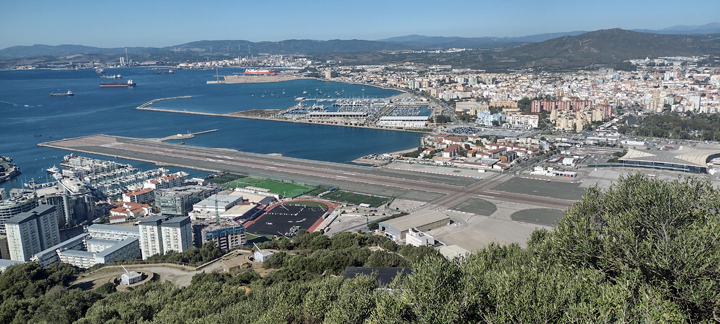 View from the mountain of the Bay of Gibraltar, the runway with the