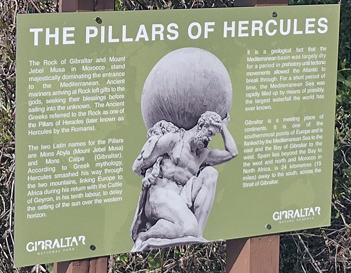 Sign depicting Hercules and explaining the "Pillars of Hercules"